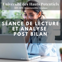 Cette séance a pour but de répondre à toutes vos questions et de vous proposer une analyse plus poussée sur les points que vous désirez approfondir.Être doué ne signifie pas seulement être intelligent, cela implique également un mode de fonctionnement unique et des besoins spécifiques. La séance de consultation après un bilan psychologique de détection de la douance offre une opportunité précieuse de comprendre et de soutenir les individus à haut potentiel.